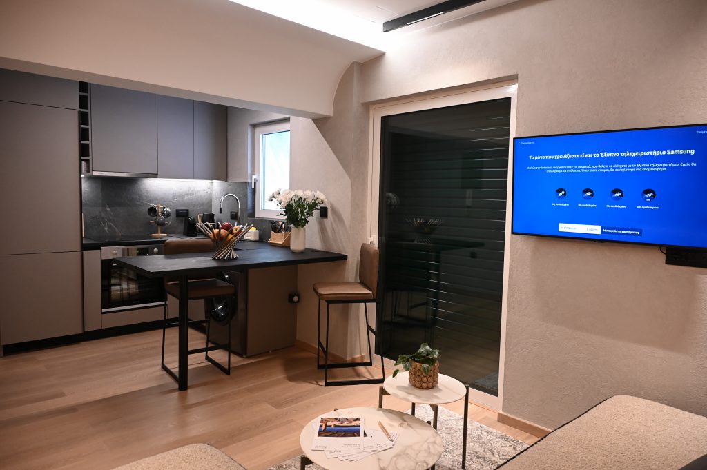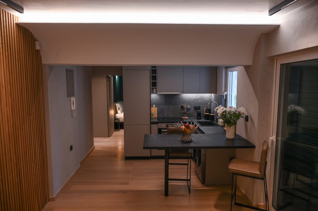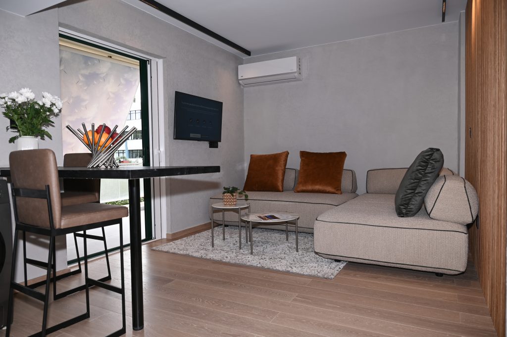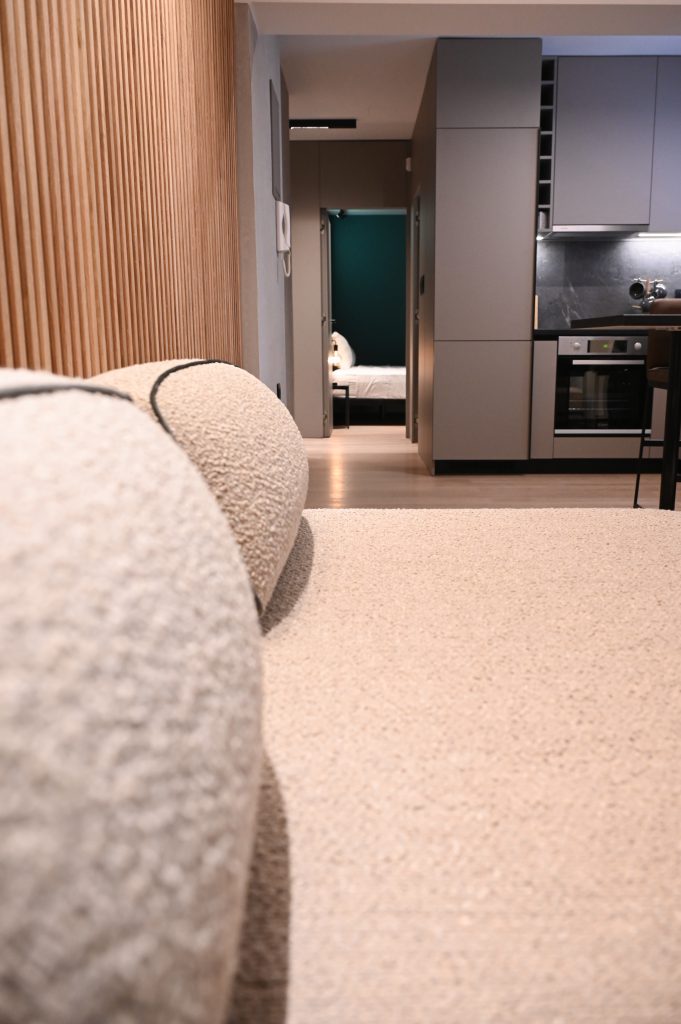 Cocoon Athenian Riviera’s boasts 40 square meters of thoughtfully optimized space, combining comfort with elegance. Every inch of this intimate yet spacious residence has been carefully designed to maximize functionality while maintaining a sense of openness and tranquility. It’s the perfect urban sanctuary for those who value style and efficiency.