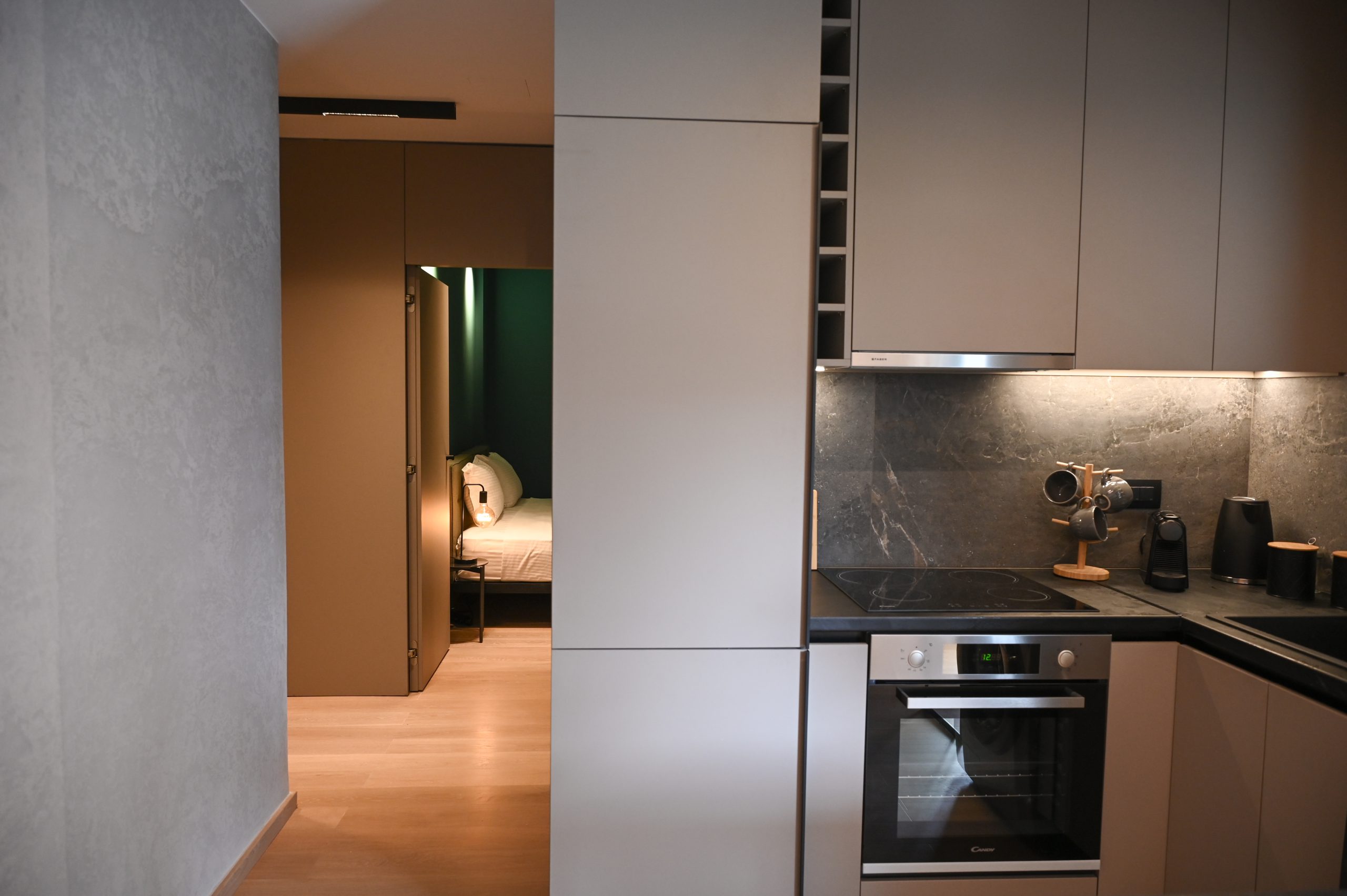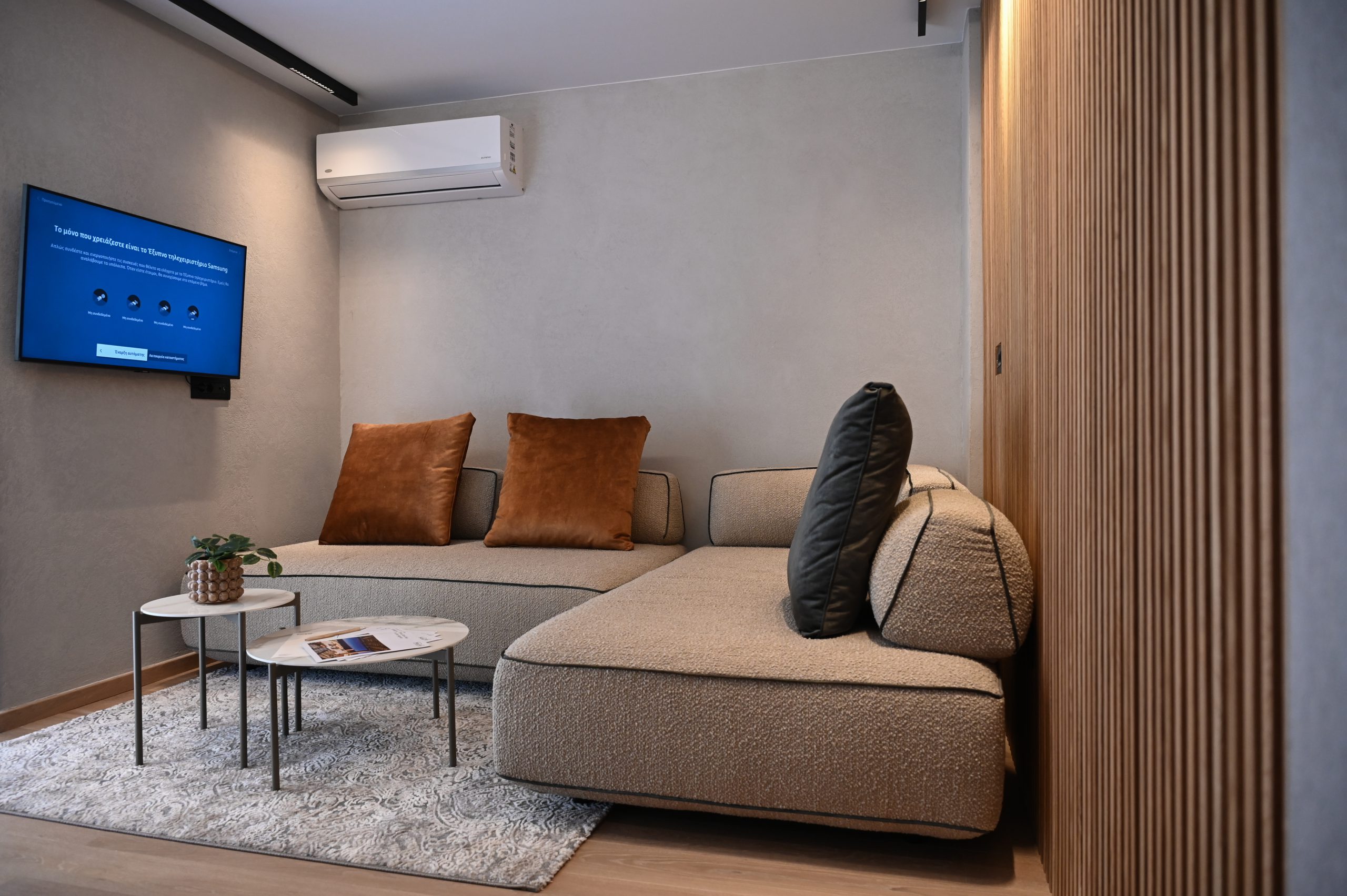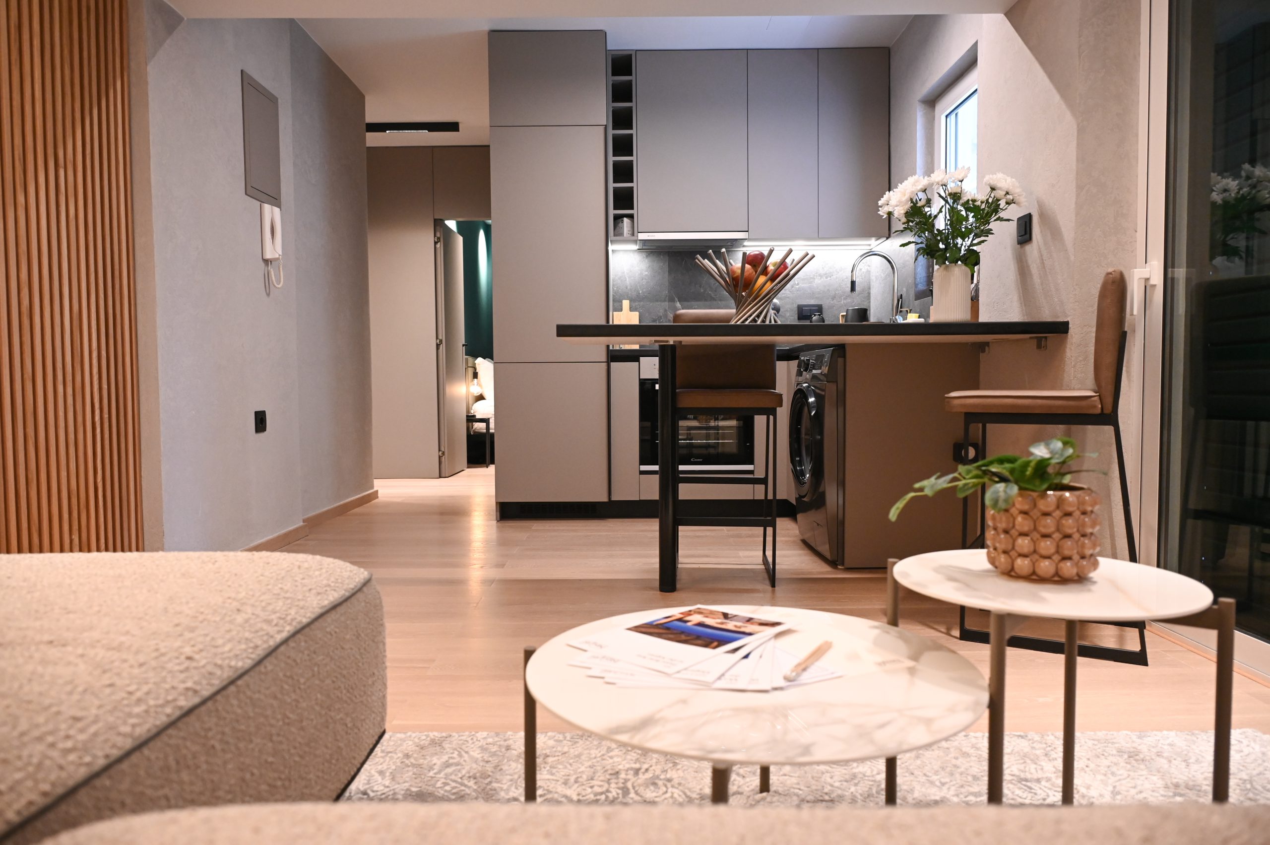 Cocoon Athenian Riviera’s boasts 40 square meters of thoughtfully optimized space, combining comfort with elegance. Every inch of this intimate yet spacious residence has been carefully designed to maximize functionality while maintaining a sense of openness and tranquility. It’s the perfect urban sanctuary for those who value style and efficiency.