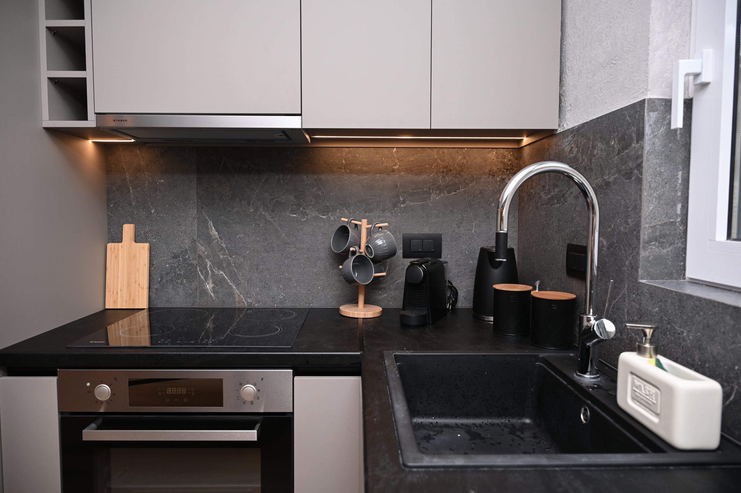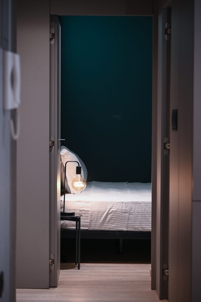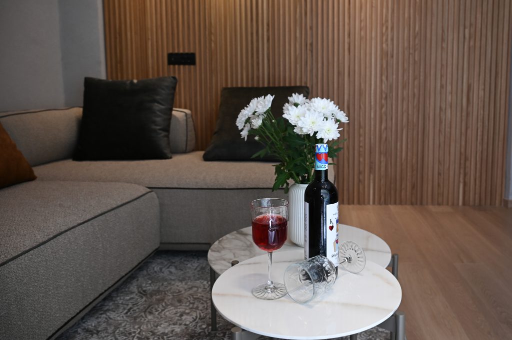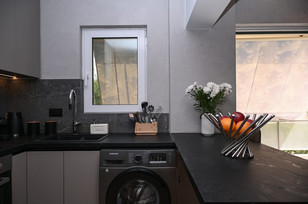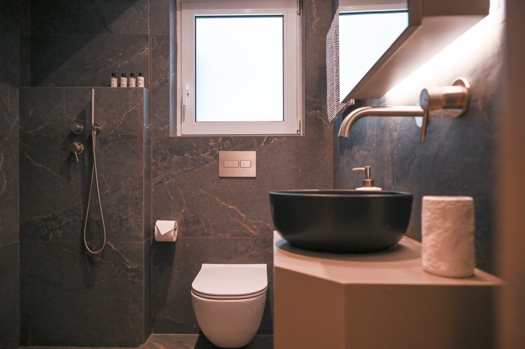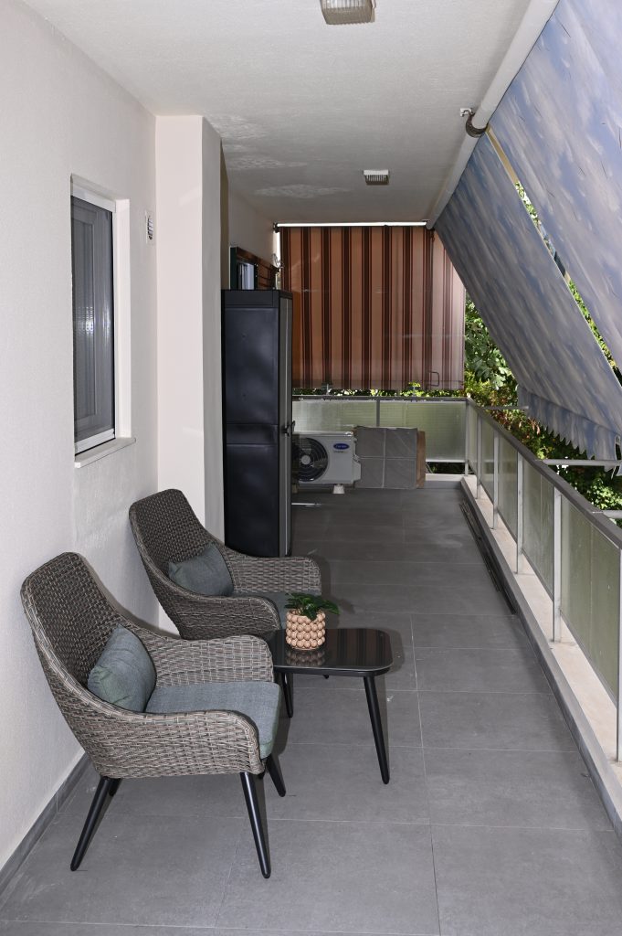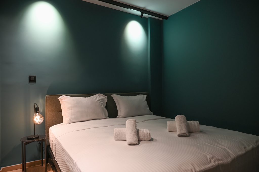 The bedroom in The Cocoon Athenian Riviera is a haven of tranquility. With ample natural light, cozy décor, and space for all your essentials, it’s a space designed to ensure you get a peaceful night’s sleep, ready to embrace the vibrant atmosphere of Vouliagmeni the next day.