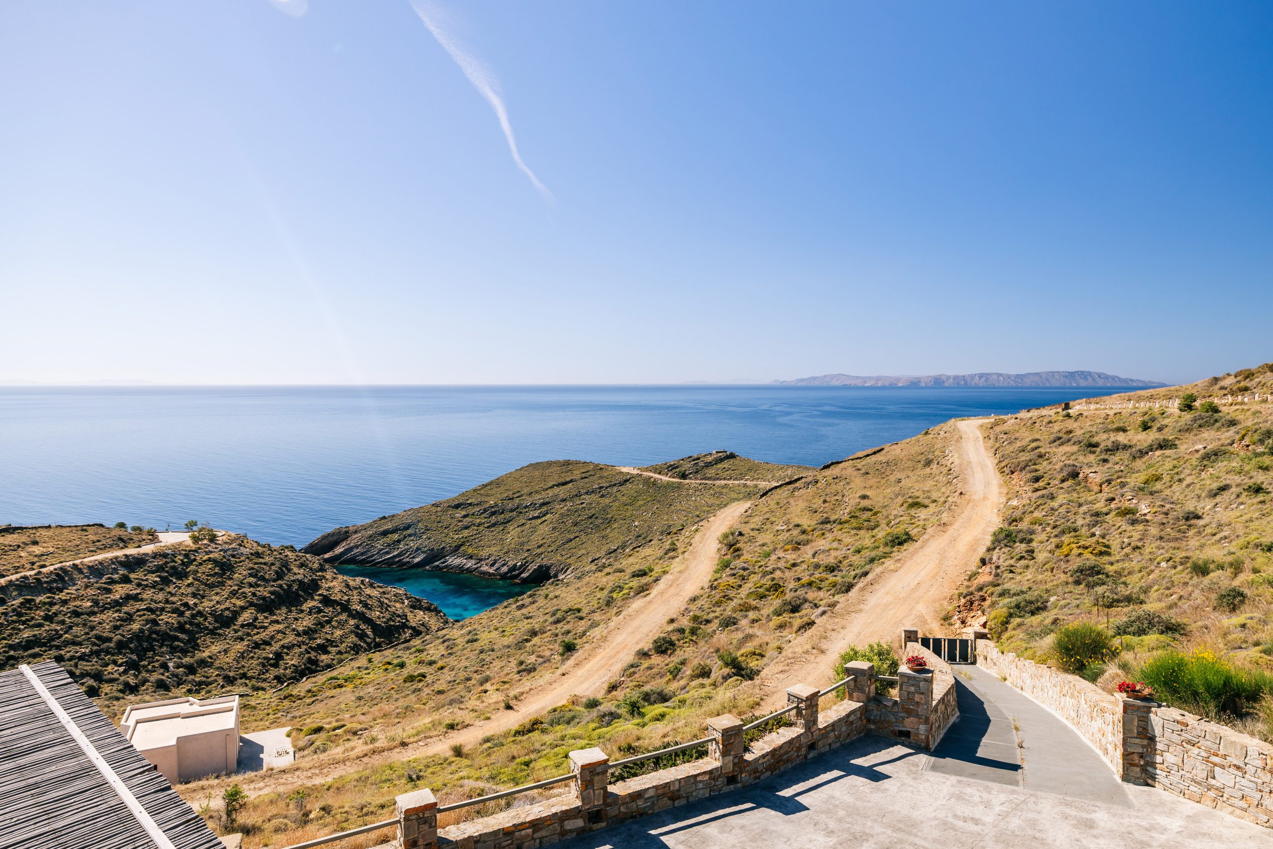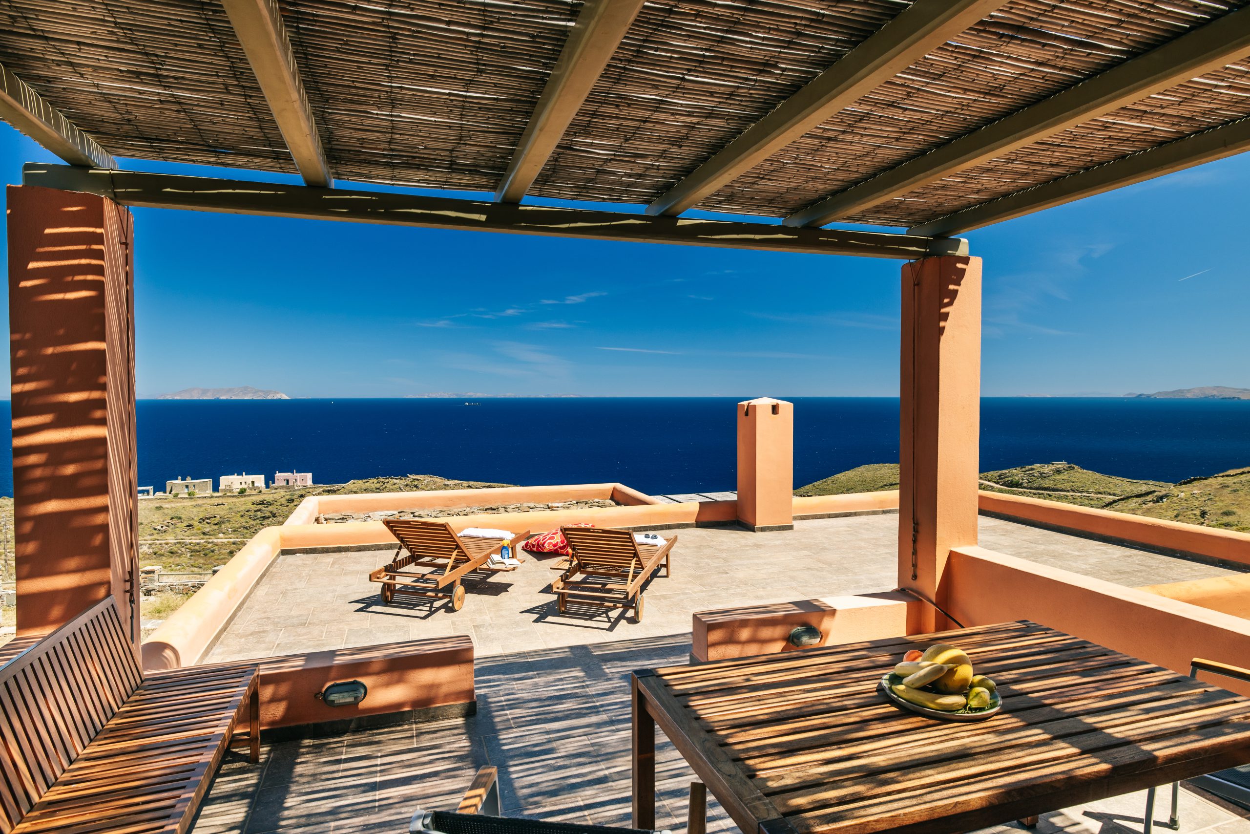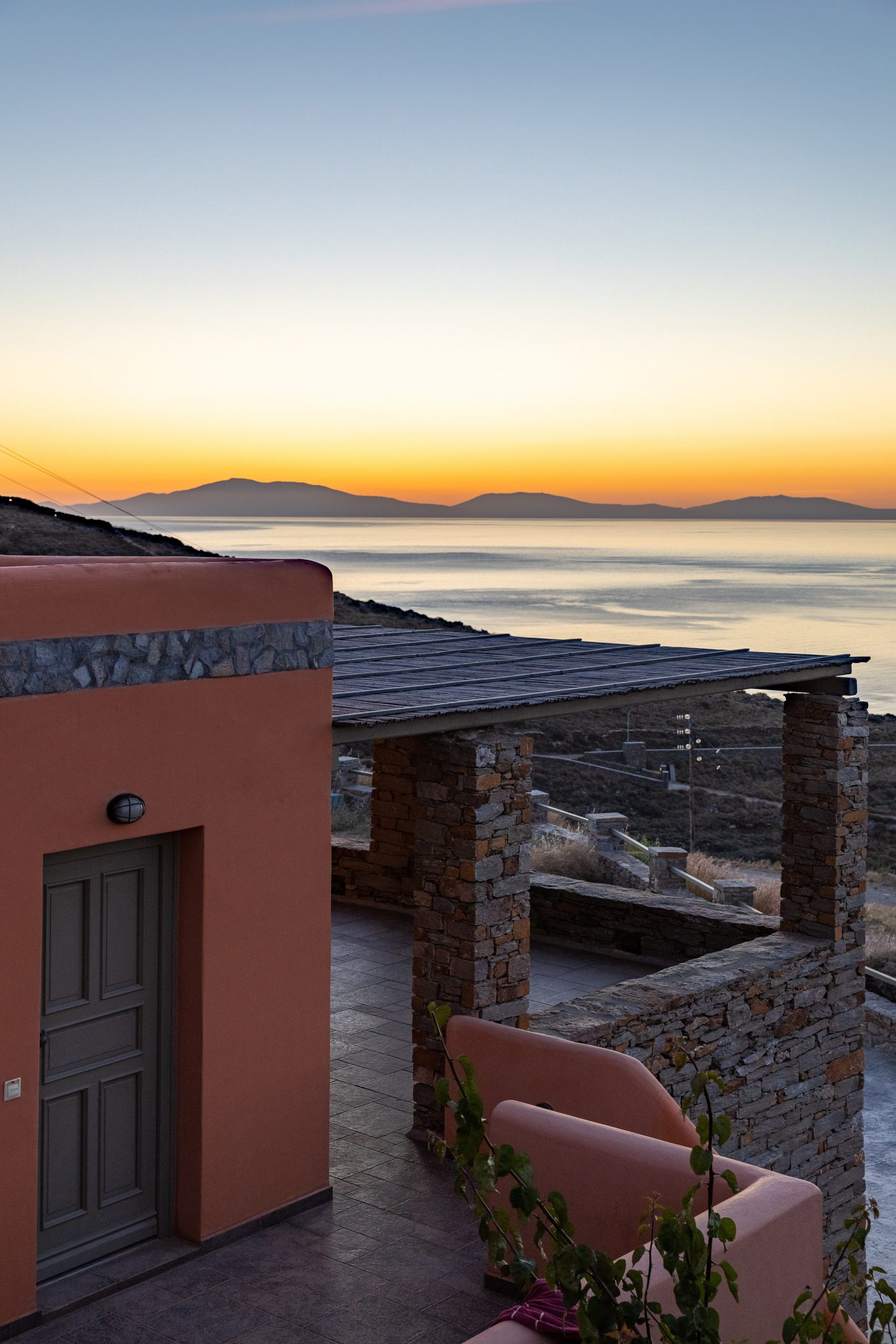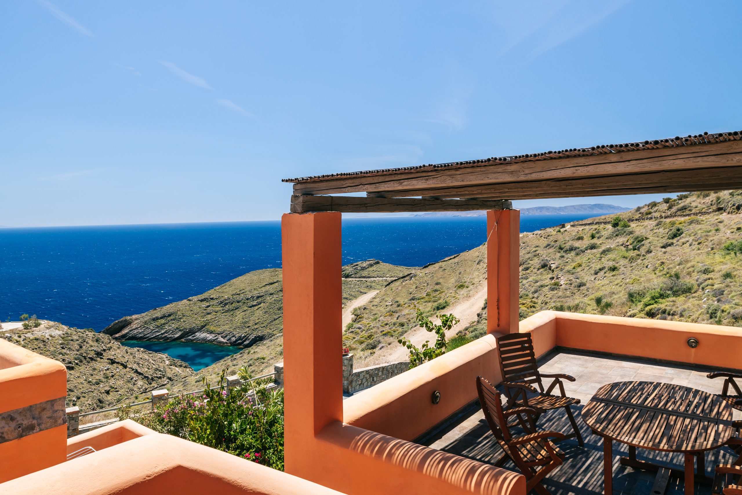 These residences were built with love and care and now you are able to enjoy the simple, yet rejuvenating holiday-making in Tzia island. The sea water will pay-off for the driving around and your sun tan will be the topic of discussion once you return home! When not exploring the island, you will be able to have dinner under the stars from our patio or taste the Greek ouzo and all the tapas (mezes) that accompany it under the flower shade. Feel free to prepare your meal in the brand new BBQ and enjoy a beverage while getting a panoramic view of over 5 Greek Cycladic islands in a 180-degree angle!