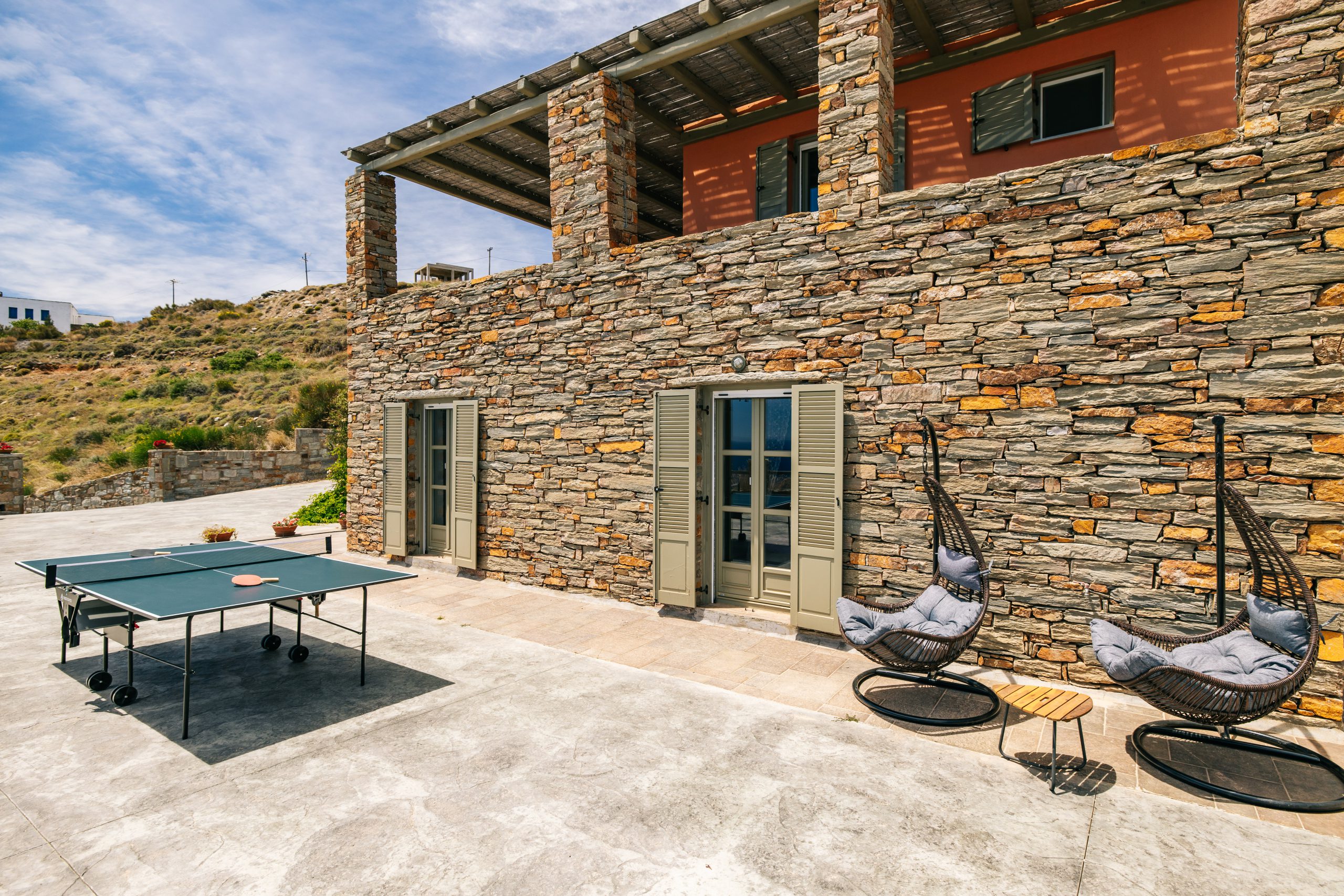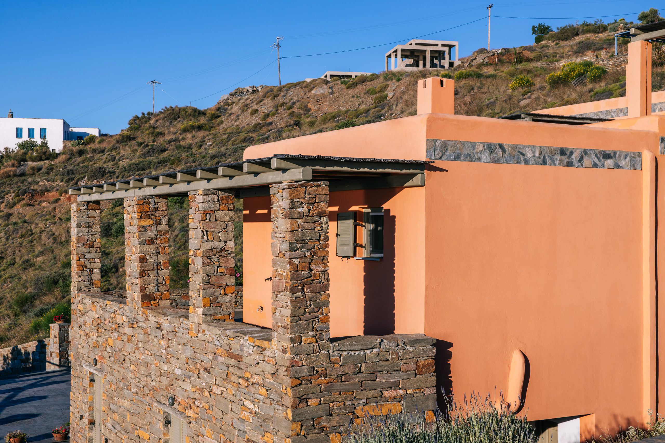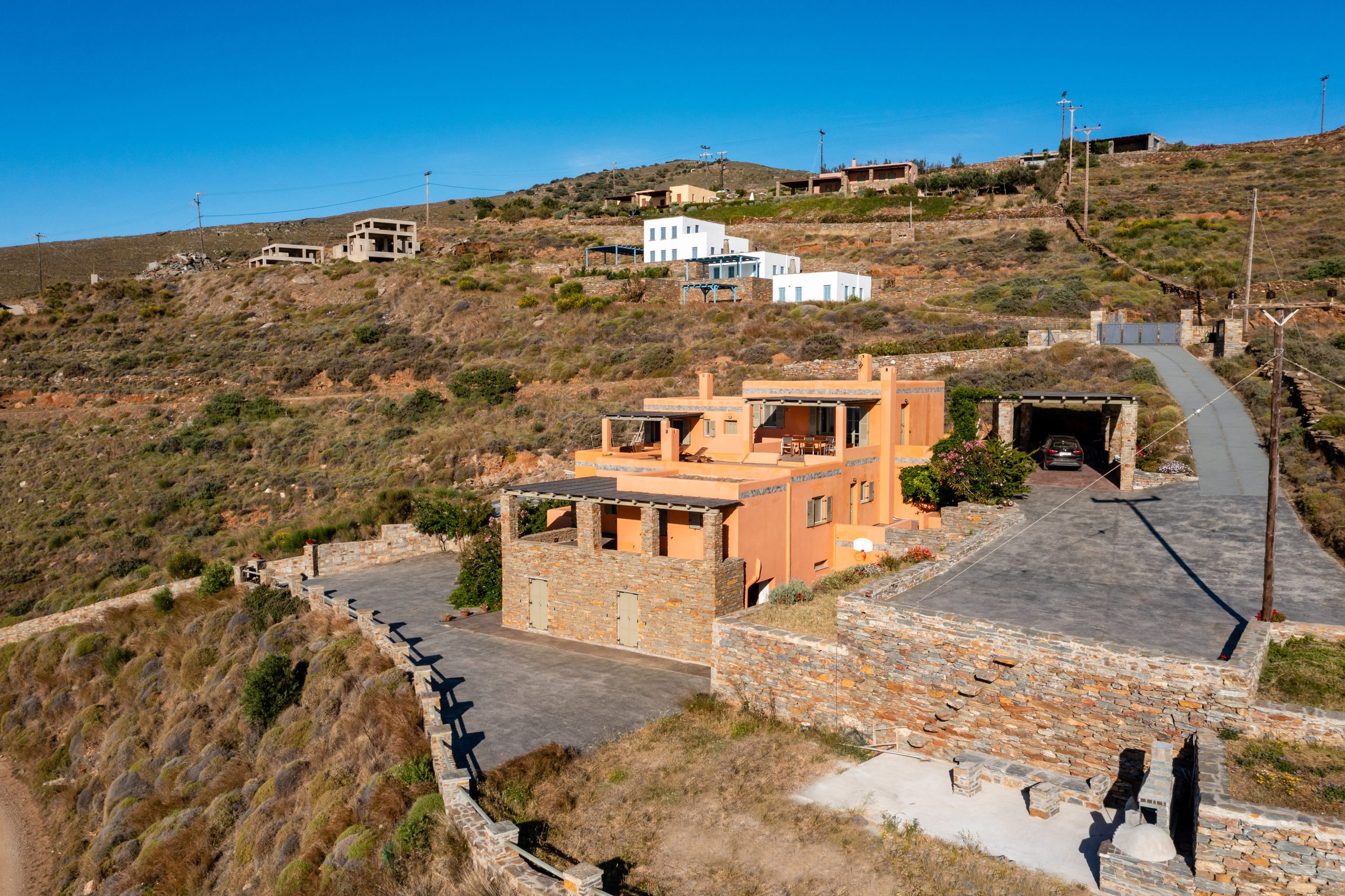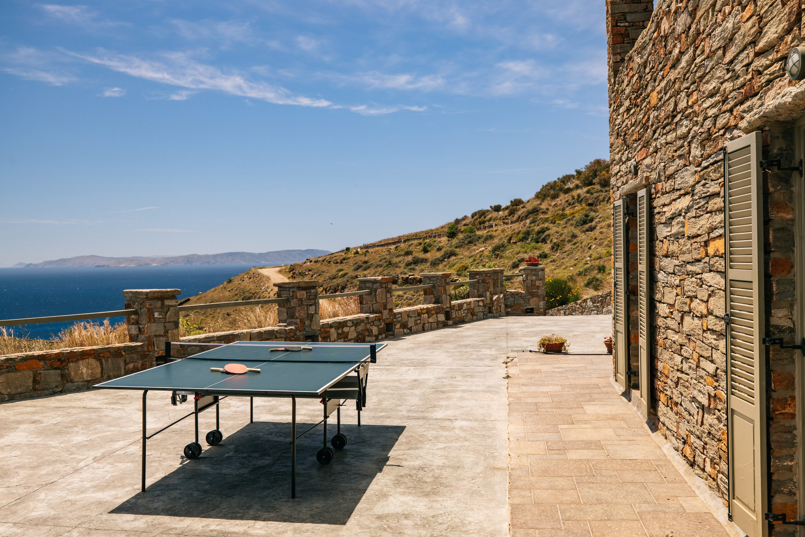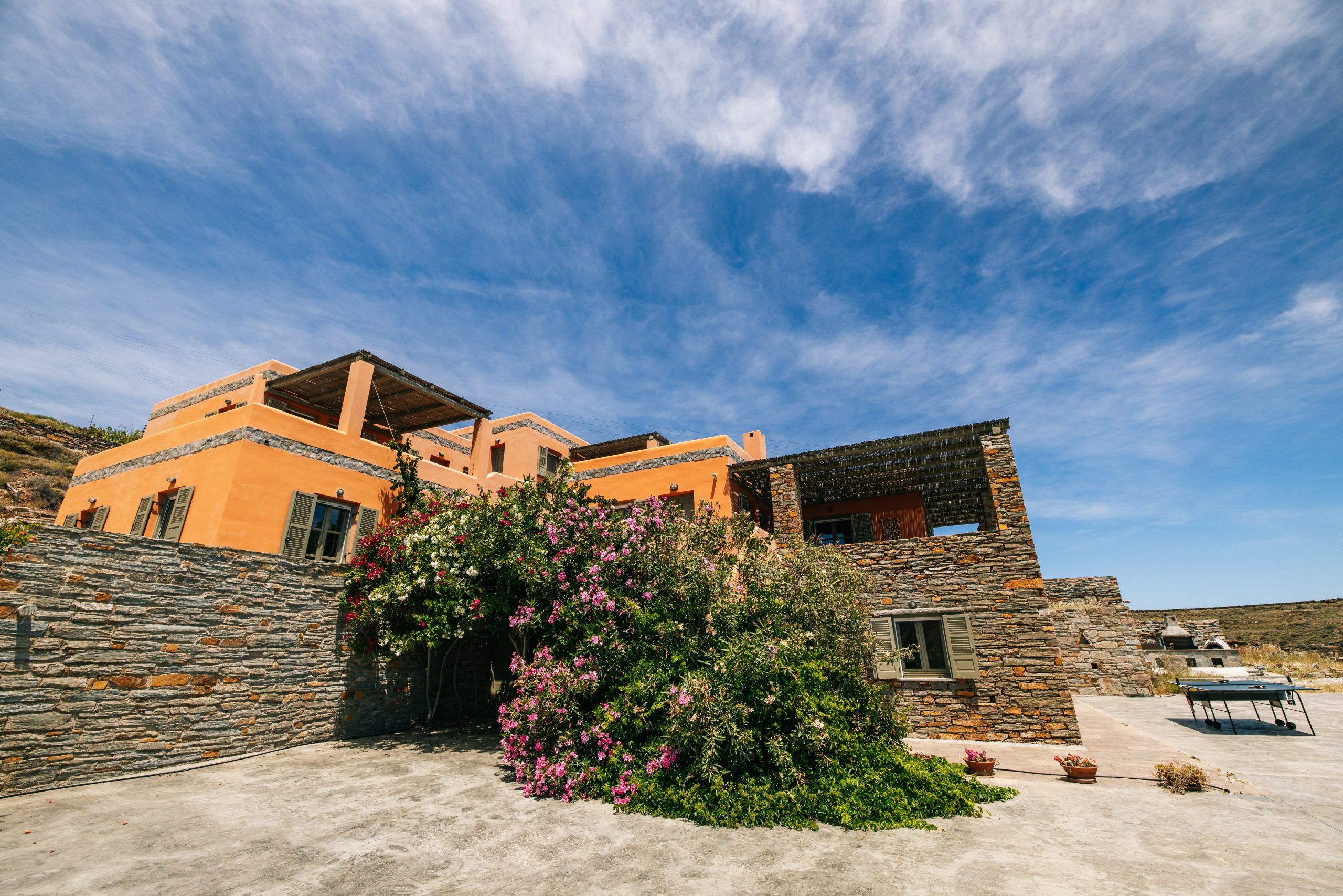These residences were built with love and care and now you are able to enjoy the simple, yet rejuvenating holiday-making in Tzia island. The sea water will pay-off for the driving around and your sun tan will be the topic of discussion once you return home! When not exploring the island, you will be able to have dinner under the stars from our patio or taste the Greek ouzo and all the tapas (mezes) that accompany it under the flower shade. Feel free to prepare your meal in the brand new BBQ and enjoy a beverage while getting a panoramic view of over 5 Greek Cycladic islands in a 180-degree angle!