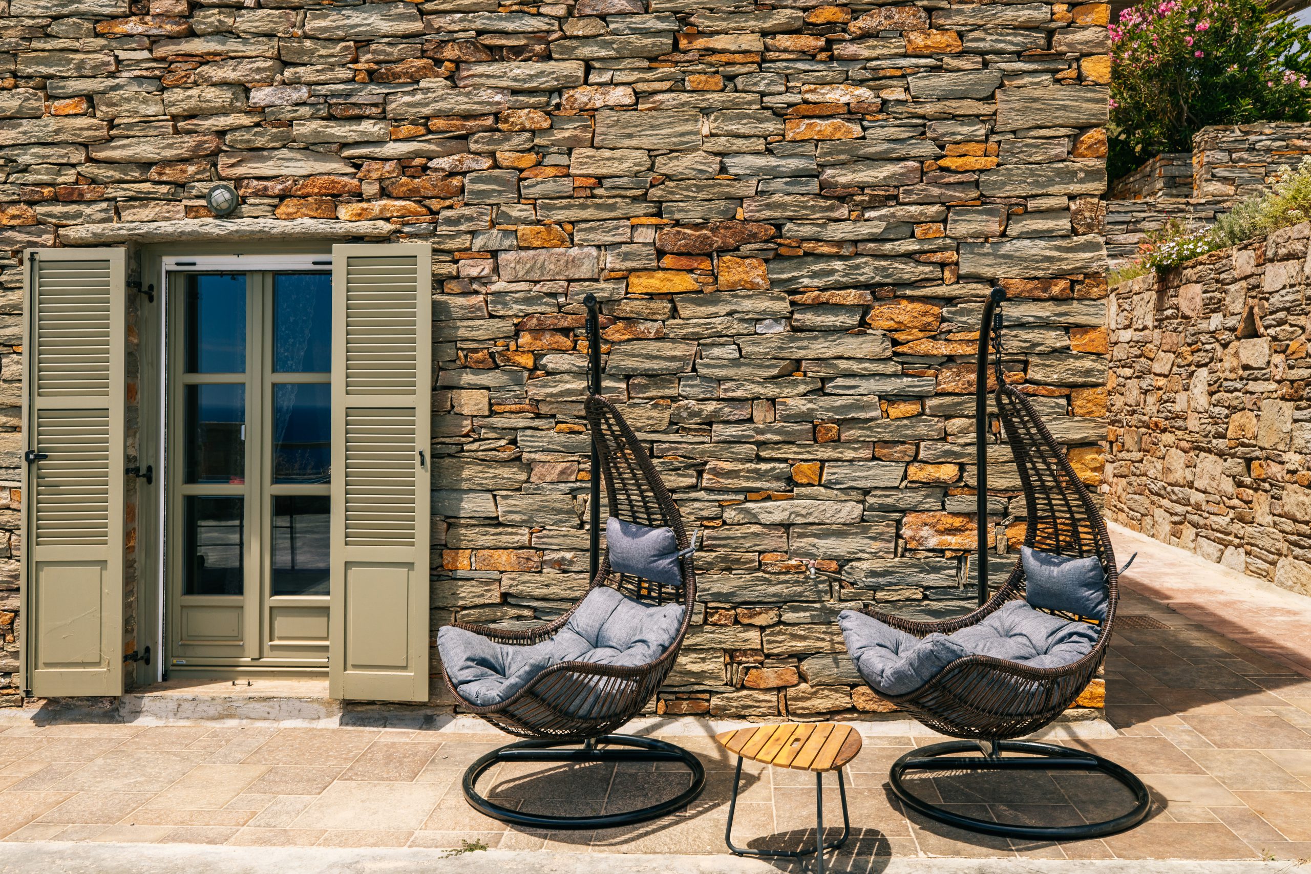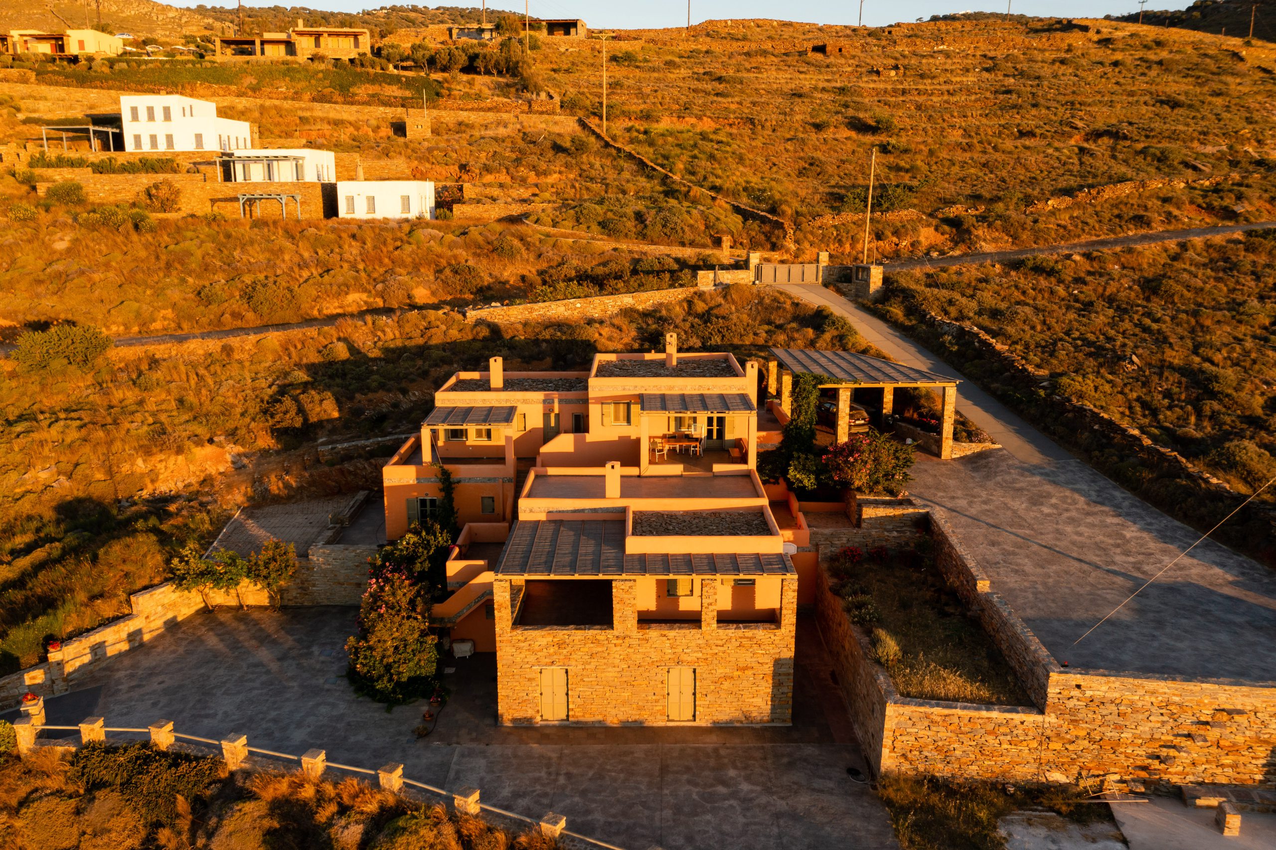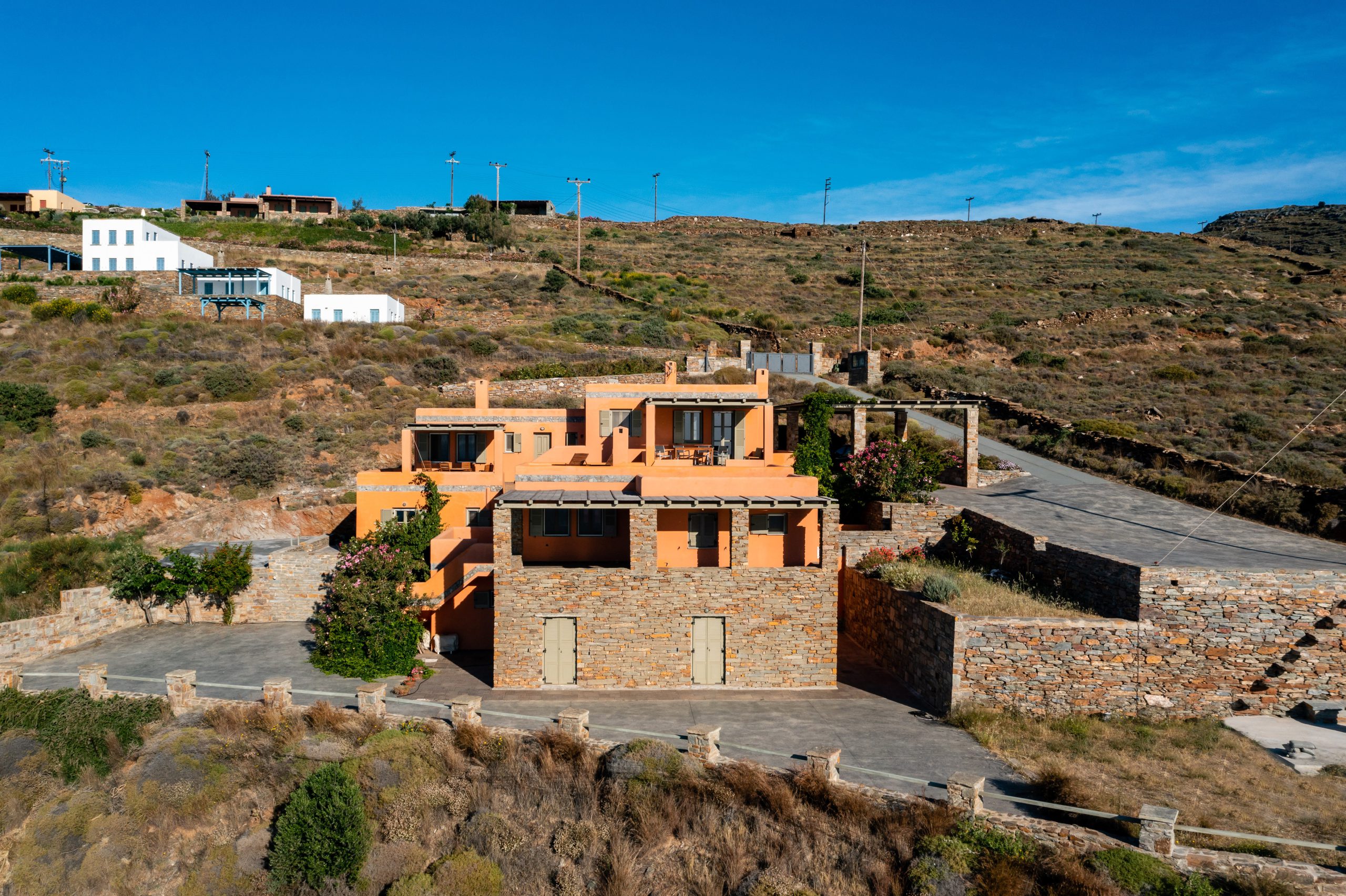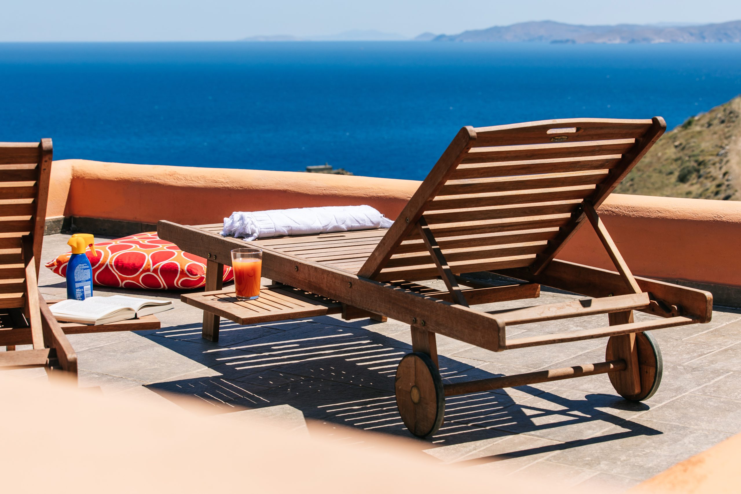These residences were built with love and care and now you are able to enjoy the simple, yet rejuvenating holiday-making in Tzia island. The sea water will pay-off for the driving around and your sun tan will be the topic of discussion once you return home! When not exploring the island, you will be able to have dinner under the stars from our patio or taste the Greek ouzo and all the tapas (mezes) that accompany it under the flower shade. Feel free to prepare your meal in the brand new BBQ and enjoy a beverage while getting a panoramic view of over 5 Greek Cycladic islands in a 180-degree angle!