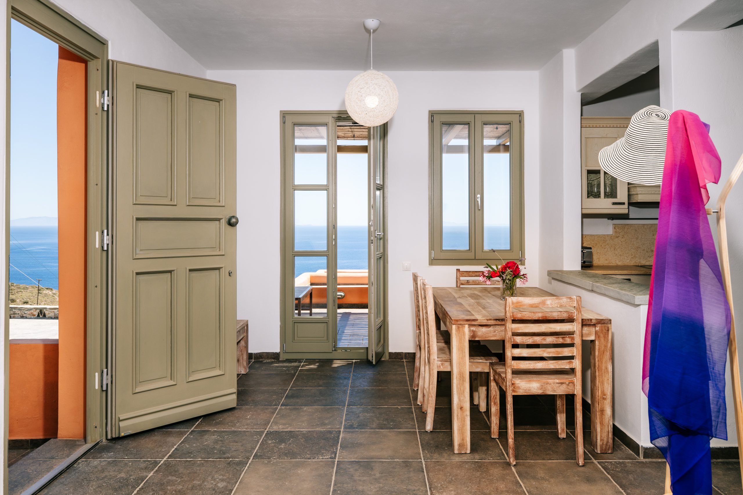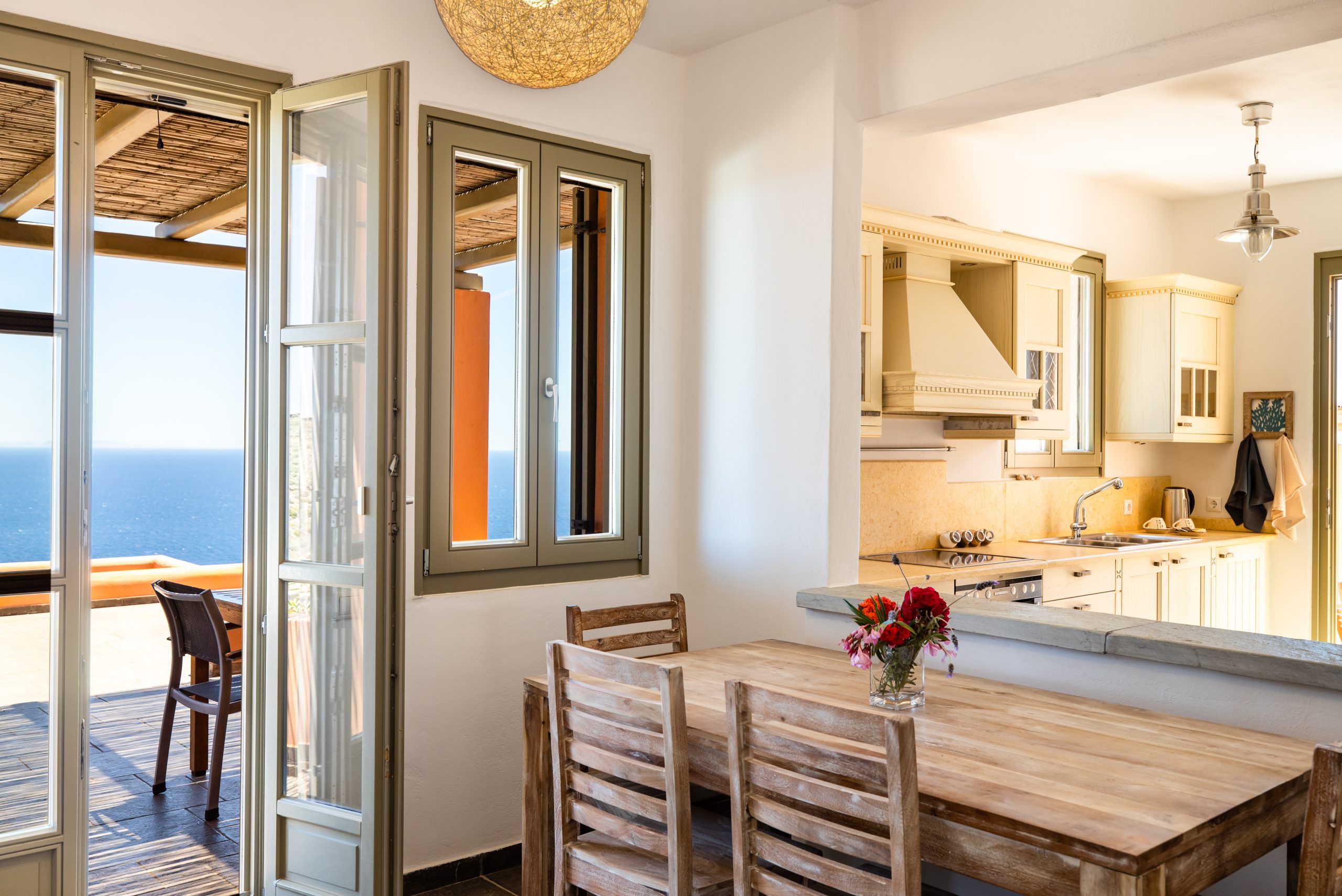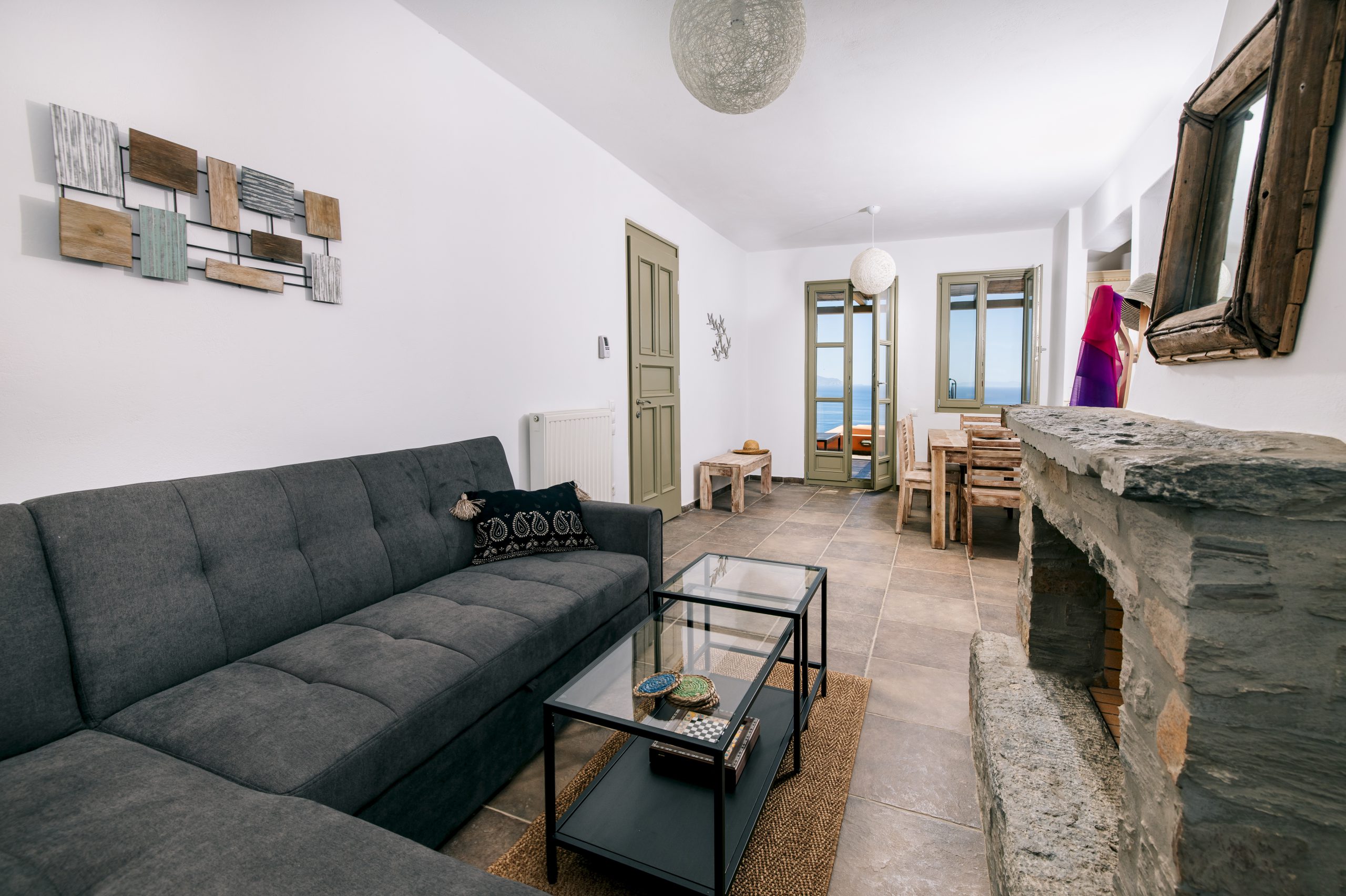 Including one bedroom, one bathroom, a full kitchen, living room and an amazing view to the Aegean sea, this is the perfect home for digital nomads, couples and island hopers. Modern, concise and easy to use, our Front Row Seat to the Aegean will provide you with everything you might need for a long weekend or a three-month stay to work from home.